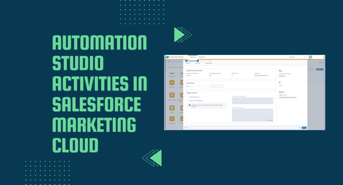 This post will help you learn about Automation Studio Activities. Automatic Studio is a Marketing Cloud app that one can use to execute data management activities and multi-step marketing on a triggered, immediate, or scheduled basis.