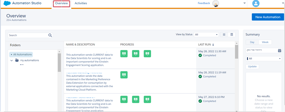 Overview: All automation is present here or if you want to create an automation, you can create it from the Overview tab.