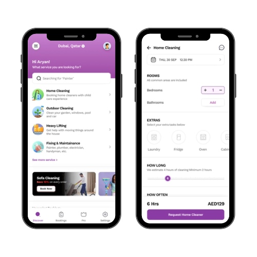 In the marketplace cleaning apps, customers can search for multi-vendors available. Different service providers can register in this app, and customers will find multi-vendor options per their service requirements and location. It is an aggregator app built for professionals to create their accounts and customers to meet a wide range of options.