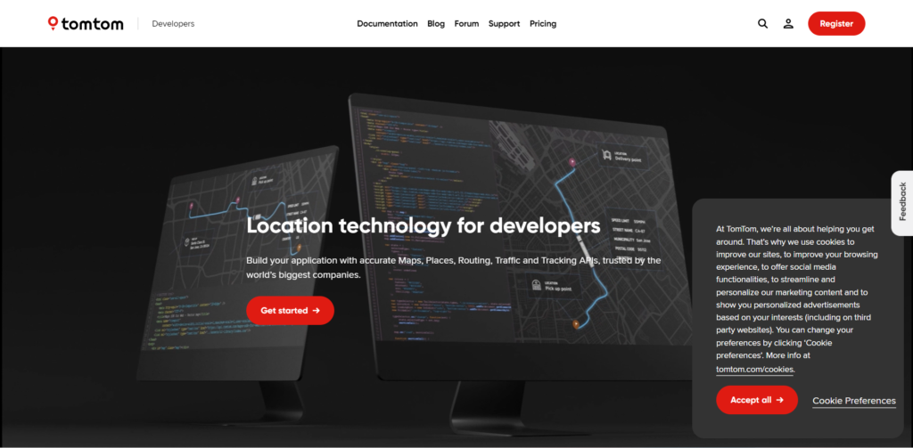 Enterprise-grade map-independent platform Sygic offers cloud-based mapping from HERE, TomTom, OSM, and certain other providers. Although they do not publish their prices online, they promise they are very reasonable and accessible, which has helped them attract 200 million users over the past 15 years. You may easily get a sample API key here.