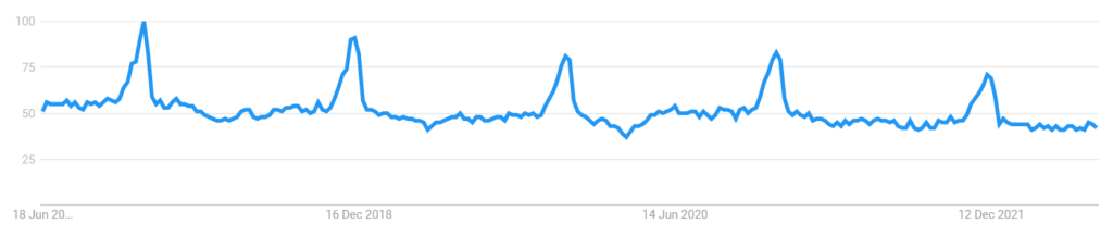 This search phrase is likely to be very seasonal, with peak demand occurring during summer.