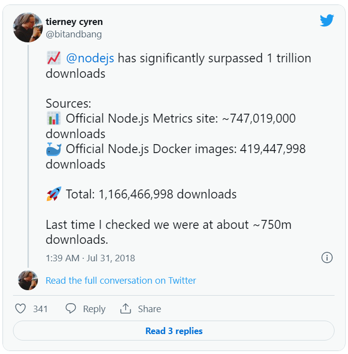 The popularity of Node.js can be estimated from the quick list of the top companies using it, including GoDaddy, LinkedIn, Reddit, eBay, Spotify, and Twitter. In the year 2018, only Node.js downloads had hit the one billion mark. It is easy for businesses to use Node.js due to the following key reasons: