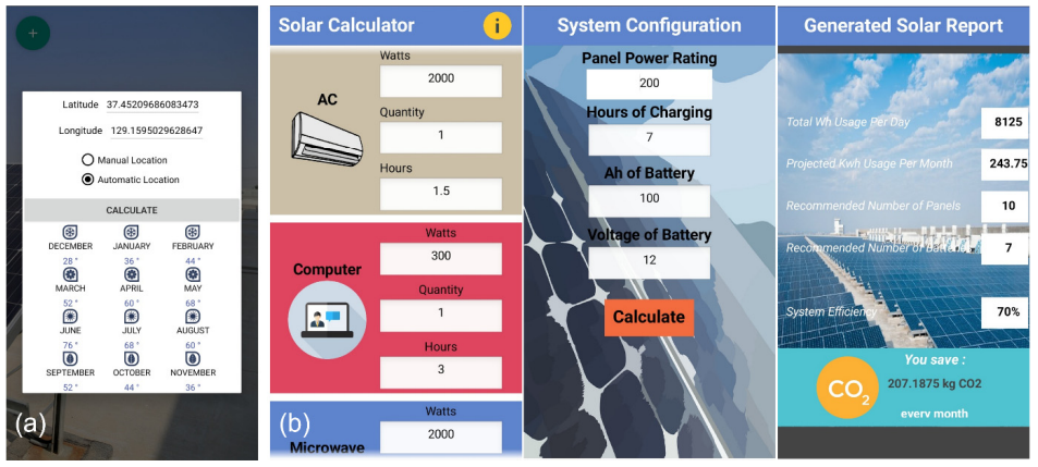 (Seasonal PV Tilt Angles app), (b) PV system configuration and report by electrical load (Solar Calculator app) ResearchGate